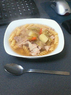 ご飯炊いて無いしろくに食材も無いため、朝から脂たっぷりのペペロンチーノを作って食べた。